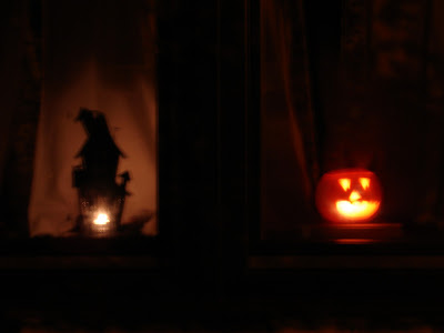 here), the universe it seems had other plans, arranging my next exam for Wednesday and a friends wedding this weekend. So Jam, the witchcat and I had our own small celebration of sorts (I'll be doing my own samhein ritual as usual tonight as well). There was of course a pumpkin, skillfully carved by Jam who expects me to believe he has never done this before (?!?), there was cake, bought in from the local shop and arranged artfully on my new cobwebby cake stand, a haunted house bought by a neighbour who knows exactly how much I love this time of year and dancing. I was also persuaded to don my fancy dress outfit of choice for some lovely new photos of me and my favourite/only familar. What a cutie pie. Happy Samhein!